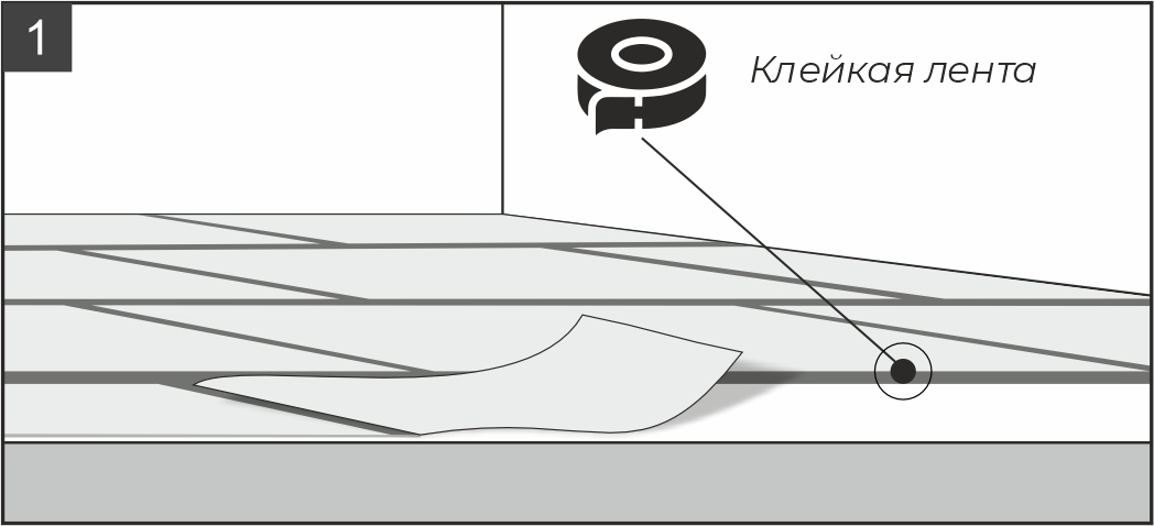 7.1. Подложка укладывается встык и закрепляется при помощи клейкой ленты по всей длине стыка (рис. 1).